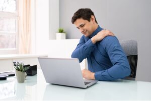 この姿勢は、首から肩にかけて大きな負担をかけます。